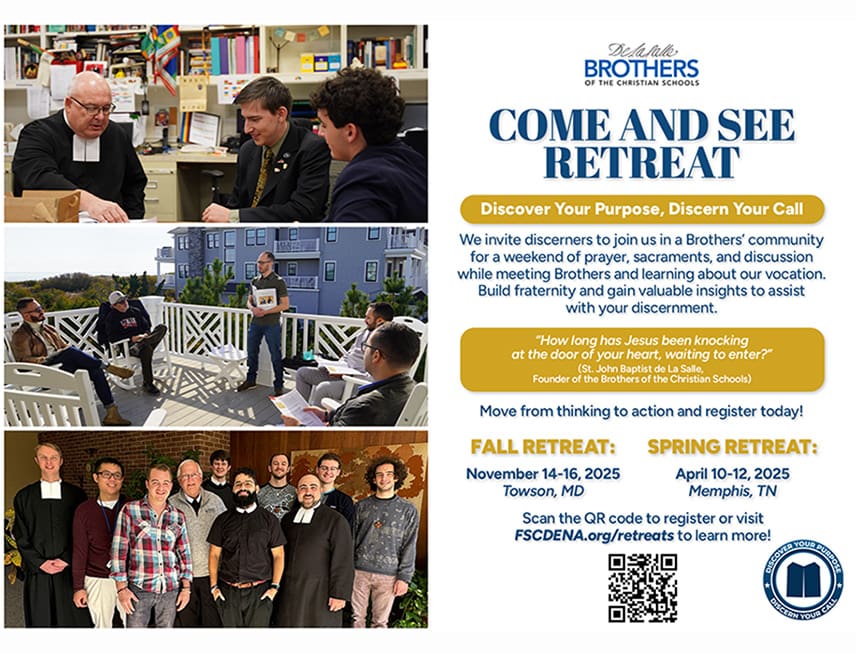 Calvert Hall College High School 8102 LaSalle Road, Towson, Maryland, United StatesMeet the Brothers of the Christian Schools and join other men in discernment. Hear from a variety of Brothers who will share our charism and their discernment and vocation stories. This prayerful weekend includes opportunities for meditation, reflection, and discussion focused on practical ways to discern God’s call. This retreat will be held at the […]